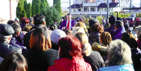 La scurt timp dup ce drumul public a fost blocat, la fata locului s-a prezentat prefectul judetului Vaslui, Eduard Popica. Prefectul le-a spus salariatilor c ii pare ru c se intalneste cu ei in astfel de situatie si c se implic in rezolvarea problemei salariatilor. ‘De sptmana trecut este un proiect de hotrare de guvern privind salarizarea. Am fost si la Consiliul Judetean, si discutm cu cei de la Ministerul de Finante’, a spus Popica. Imediat, mai multi salariati i-au replicat prefectului c au mai auzit astfel de promisiuni si nu s-a intamplat nimic. ‘Pan cand s acceptm aceste minciuni? Am citit toate materialele de la sedintele de guvern. Ne duceti cu vorba’, i-a strigat o femeie prefectului. O alt salariat, pe un ton mai ridicat, a continuat cu apostofrile la adresa prefectului: ‘Ne-ati dat asigurri c ne vom primi salariile. Nu avem nevoie de cuvinte frumoase, avem nevoie de bani. Suntem navetisti, ne imprumutm s venim la munc. Avem rate la bnci, iar de dou luni nu suntem pltiti’, a spus salariata. Eduard Popica a precizat c este pentru prima oar cand vine la sediul DGASPC, si le-a promis salariatilor c maine (astzi, n.r.) va fi la Bucuresti pentru a discuta problema salariilor. ‘Trebuie s intelegeti c eu imi dau tot interesul pentru salariile voastre!’, a explicat Popica. n ciuda acestor angajamente, sindicalistii si-au continuat ofensiva, intrebandu-l, nu fr ironie, pe prefect dac el si-a luat salariul, dac lea cumprat copiilor cele necesare, dac si-a pltit facturile etc. ‘Noi nu avem bani pentru toate aceste lucruri ‘, a spus una dintre femei. Prezent la protestul sindicalistilor din DGASPC, Gheorghe Croitoru, presedintele CNSRL Frtia Vaslui, i-a spus prefectului cundeva, dincolo de nivelul local, este o ‘mare porcrie’, si din aceast cauz oamenii nu-si primesc banii. ‘A fost primul-ministru la una din sedintele sindicatului nostru si l-am intrebat de situatia de la DGASPC. Am primit asigurri c la rectificare se vor plti salariile si se vor lua msuri ca, in anii urmtori, s nu se mai intample acest lucru. Sedinta a trecut, rectificarea s-a fcut, dar nu au fost transferati banii pentru salarii’, a spus Croitoru.