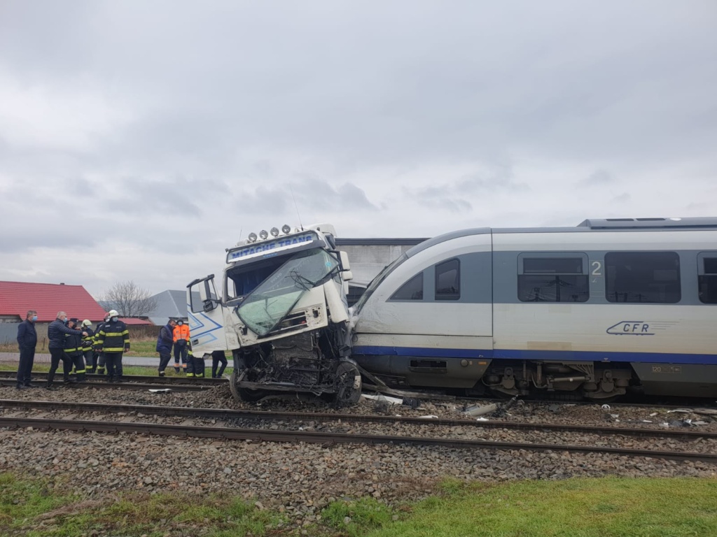 Accident feroviar la Roșiești: tir acroșat de trenul Iași – Bârlad