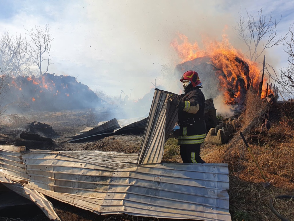 La sosirea echipajelor de intervenție, incendiul se manifesta cu violență într-un depozit de furaje și se extinsese la un utilaj agricol și un autoturism de teren.