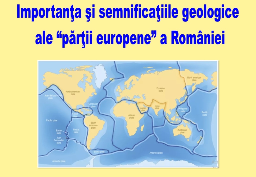 „Restul teritoriului românesc este de origine africană, adaugat în orogenezele: Caledoniană și Variscă (la ultima formându-se vestita Pangeea). În 2020, am avut de îndeplinit un contract cu o firmă de petrol pentru niște perimetre din Platforma Moesica și din zona Adjud. Asta m-a obligat sa studiez problema platformelor mai îndeaproape, inclusiv potențialul petrolifer. Cred că am destule lucruri interesante de transmis publicului.” (note de autor)