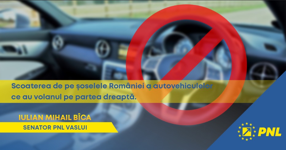 Senatorul liberal de Bârlad, Iulian Mihail Bîca, anunță opinia publică despre faptul că se numără printre parlamentarii care au votat un proiect de lege ce vizează siguranța rutieră prin limitarea autovehiculelor ce au volanul situat pe partea dreaptă.