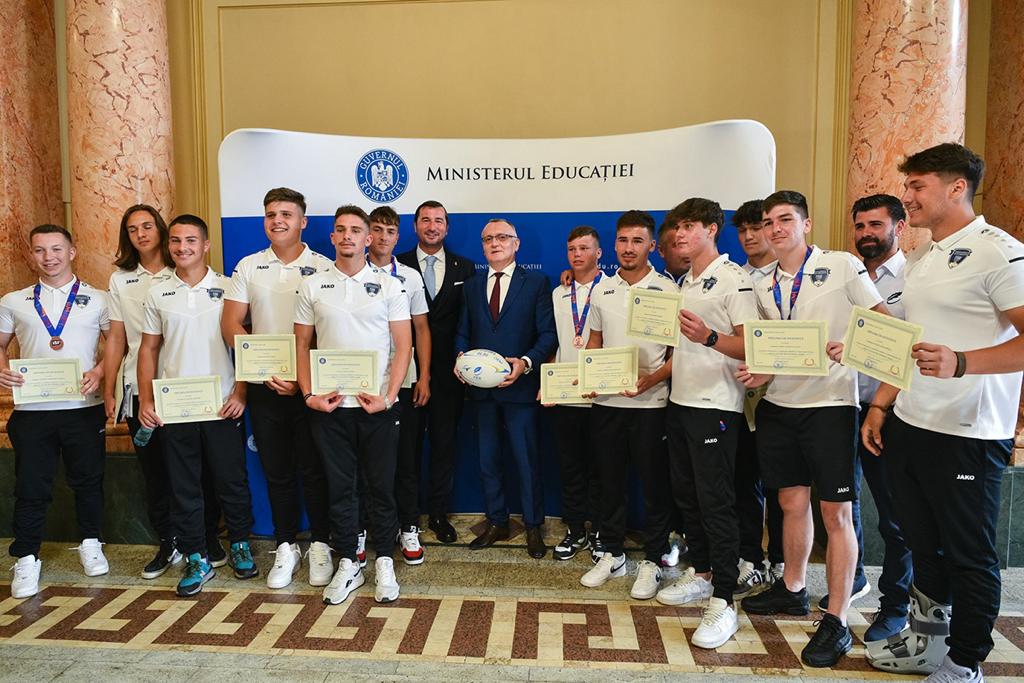 „Momente pline de emoție pentru medaliații Gimnaziadei de vară care a avut loc în Normandia (Franța) între 14-22 mai! Astăzi (marți, 7 iunie, n.r.), în cadrul unui eveniment special ce a avut loc la Biblioteca Centrală Universitară «Carol I» din București, aceștia, împreună cu reprezentanții federațiilor sportive de care aparțin au fost felicitați de către Sorin Mihai Cîmpeanu, ministrul Educației. România 7s a obținut medalia de bronz, aceasta fiind prima participare la o competiție internațională a generației 2005-2006. Președintele Federației Române de Rugby, Alin Petrache, a oferit oficialului forului de resort un balon de rugby cu semnăturile tinerilor medaliați, în semn de apreciere pentru susținerea arătată”, au precizat oficialii Federației Române de Rugby.