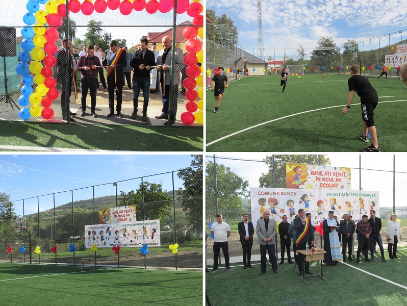 Primarul de Banca, Vasile Vînătoru, aflat deja la cel de-al cincilea mandat în fruntea comunei, s-a aflat vineri, 30 septembrie, în mijlocul elevilor Școlii Gimnaziale nr. 1 sat Gara Banca. Motivul: a inaugurat un teren de sport sintetic, multifuncțional, realizat în totalitate cu fonduri de la bugetul local (peste 250.000 lei), unde copiii își vor putea desfășura orele de educație fizică în condiții moderne.