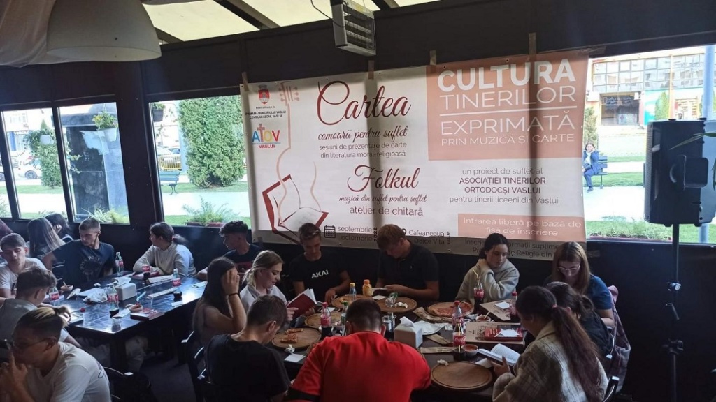 Pe parcursul a două luni, cei din Asociația Tinerilor Ortodocși Vaslui și-au dat întâlnire cu peste 500 de tineri vasluieni într-o cafenea din ora unde aceștia au primit o carte, o pizza și un suc. Totul s-a întâmplat în cadrul proiectului „Cultura tinerilor exprimată prin muzică și carte”, derulat de asociație, prin care s-a urmărit atragerea tiinerilor spre muzica folk și lectura cărților.