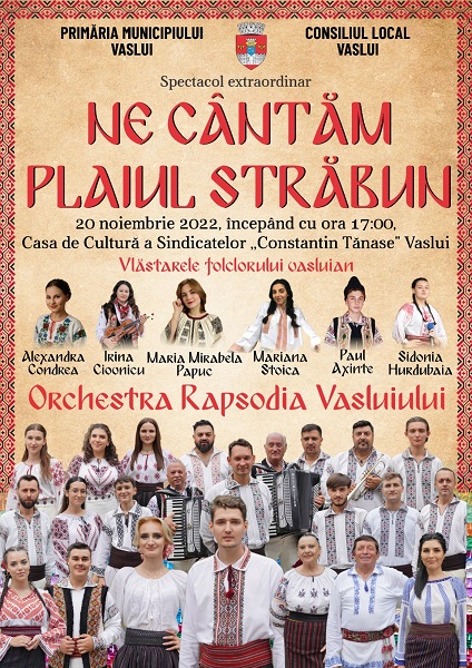Evenimentul susținut de Rapsodia Vasluiului va avea loc pe 20 noiembrie 2022, ora 17.00, la Casa de Cultură „Constantin Tănase” din centrul municipiului Vaslui.