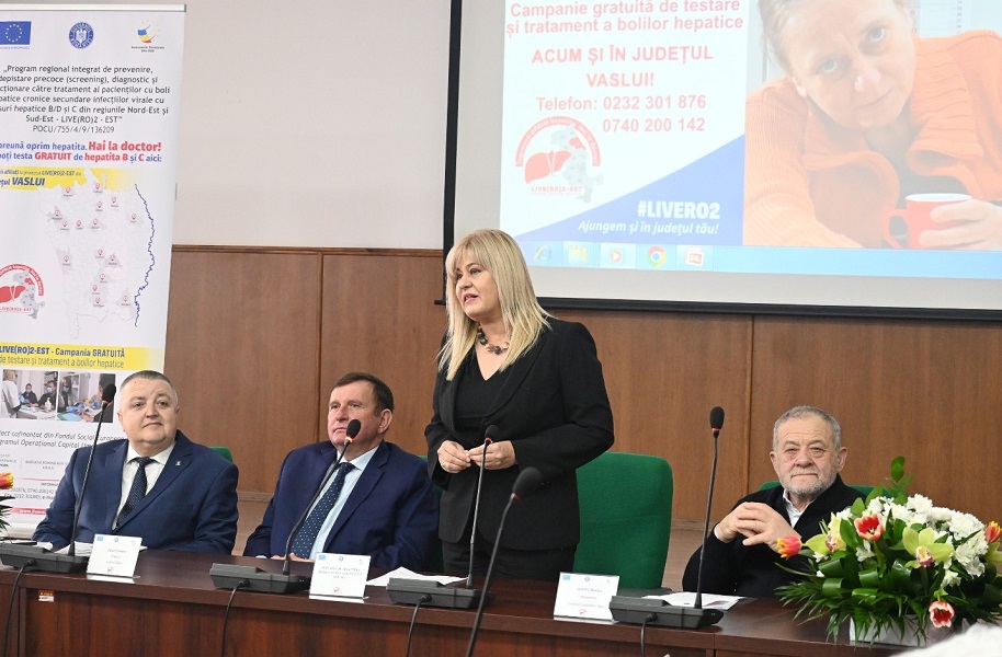 Ieri, sala de ședințe a Consiliului Județean (CJ) Vaslui a găzduit lansarea campaniei de testare gratuită privind afecțiunile hepatice din județul nostru. Aceasta se va derula ca activitate în cadrul proiectului „Live(Ro)2-Est”, implementat de Universitatea de Medicină și Farmacie „Grigore T. Popa” Iași împreună cu Spitalul Clinic de Urgență „Sfântul Spiridon” Iași și Asociația Română Anti-Sida (ARAS).