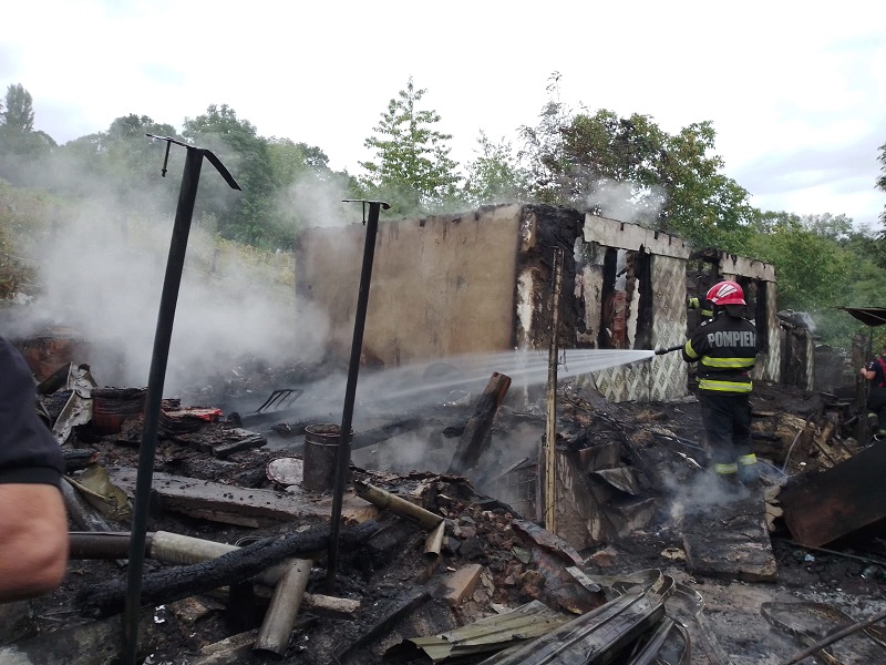 Locuința cuprinsă de flăcări și anexele gospodărești au fost degradate în proporție de aproximativ 80%.