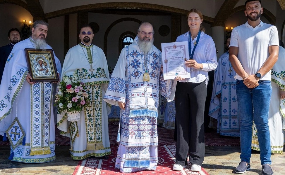 Duminică, 8 septembrie 2024, de Sărbătoarea Nașterii Maicii Domnului, după ce a a săvârșit Sfânta Liturghie la Mănăstirea „Alexandru Vlahuță”, Protopopiatul Bârlad, cu prilejul hramului sfântului așezământ, Părintele Ignatie, Episcopul Hușilor, a oferit, în semn de prețuire, canotoarei Adriana Adam, medaliată cu aur, la Jocurile Olimpice de la Paris 2024, la proba opt rame cu cârmaci, Crucea eparhială „Maria Costachi”, a Episcopiei Hușilor.