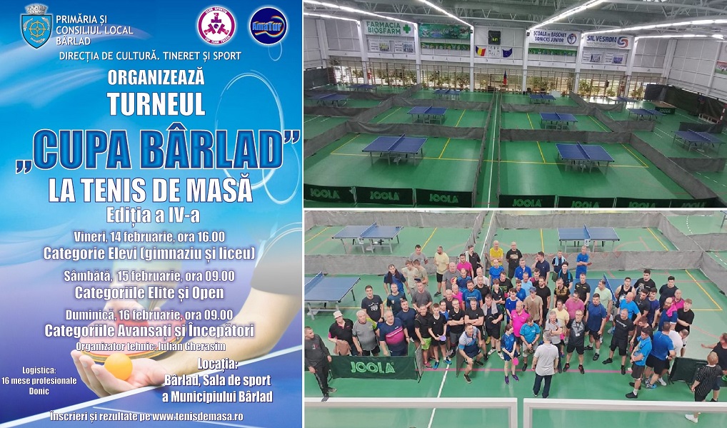 Copiii, tinerii și adulții care iubesc tenisul de masă sunt invitați să se înscrie la a patra ediție a Turneului „Cupa Bârlad”. Competiția sportivă va avea loc între 14-16 februarie, în incinta Sălii de Sport a municipiului Bârlad.
