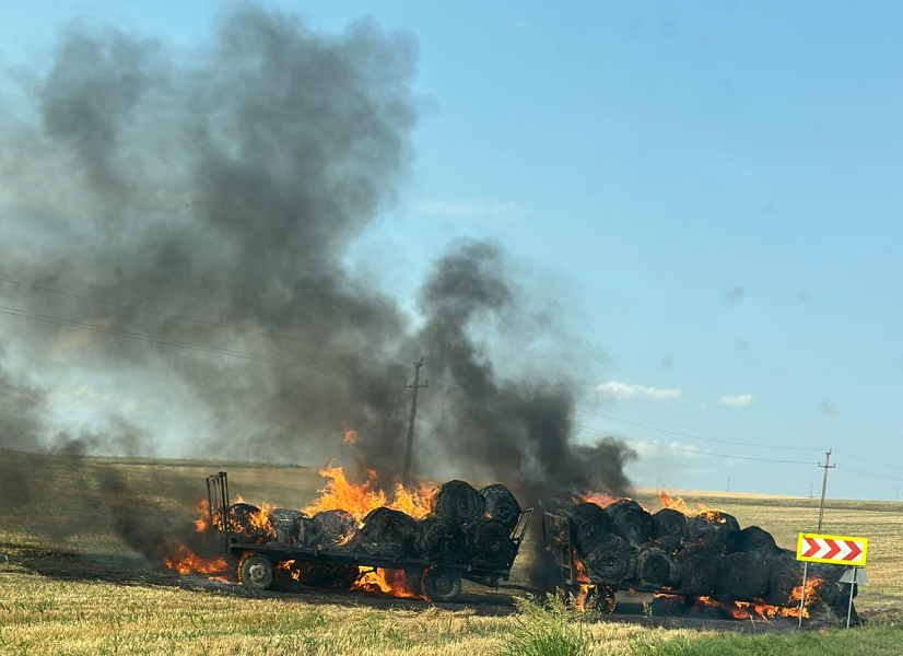 Pompierii vasluieni au intervenit, în cursul zilei de ieri, pentru stingerea unui incendiu izbucnit la două remorci încărcate cu baloți de fân, aflate în mers, în apropierea orașului Murgeni.