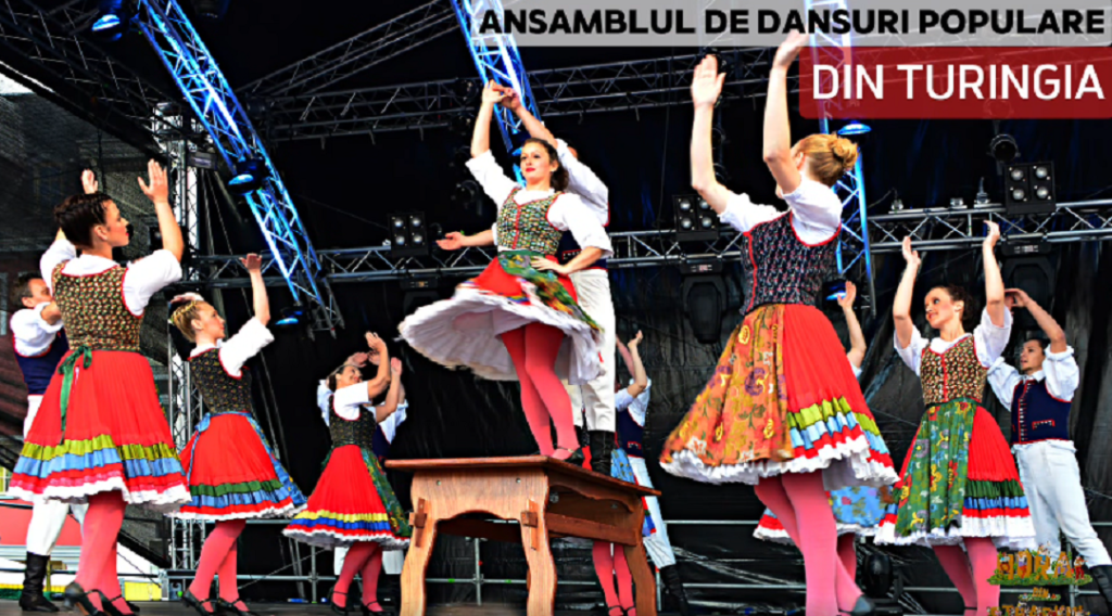 Evoluția Ansamblului de dansuri folclorice thuringiene din Rudolstadt, Germania, fondat în 1960, va putea fi admirată la Vaslui, luni, 4 august. „Ritm, culoare și tradiție germană autentică”, promit organizatorii: „Din centrul Germaniei, Ansamblul de Dansuri Populare din Turingia aduce pe scena Festivalului „Hora din Străbuni” o explozie de vitalitate, coregrafii dinamice și costume tradiționale spectaculoase. Este un omagiu adus rădăcinilor culturale, redat cu precizie, bucurie și respect pentru tradiție”.