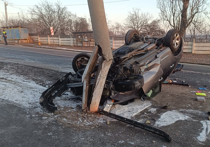 Un accident rutier s-a produs, în această dimineață, în municipiul Huși, unde un autoturism înmatriculat în Ucraina a derapat și s-a răsturnat în rigola de pe marginea drumului.