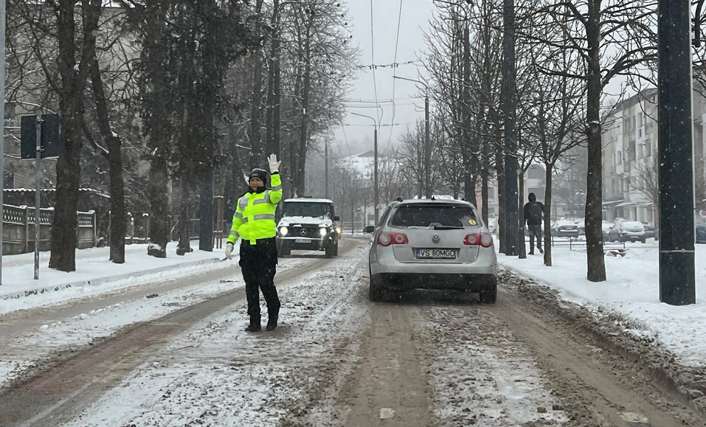 „Recomandăm conducătorilor auto să adapteze viteza la condițiile de drum, să păstreze o distanță corespunzătoare față de vehiculele din față și să utilizeze autovehicule echipate corespunzător pentru sezonul rece”, transmite Poliția Locală Vaslui.